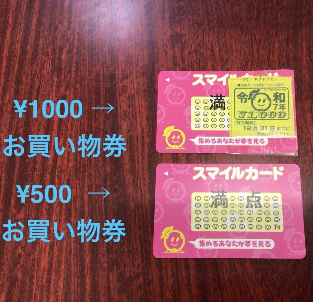 ボーナス券を、お手持ちのスマイルカードの満点カードに添付して